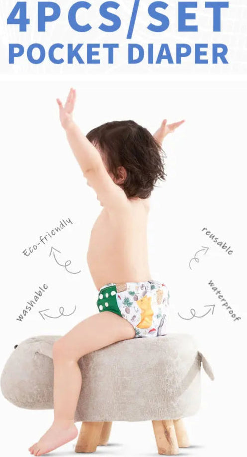 4 قطع من حفاضات الأطفال الصديقة للبيئة والقابلة لإعادة الاستخدام