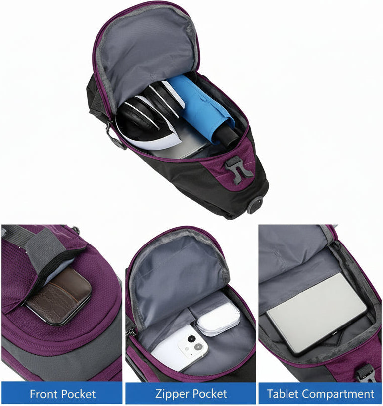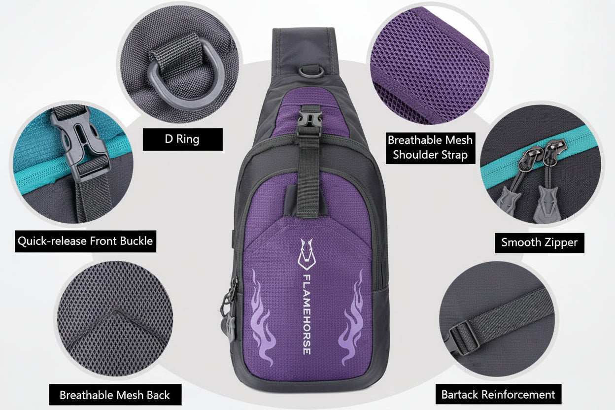 ٥. متعددة الاستخدامات: يمكن استخدامها كحقيبة كروس بودي، أو حقيبة كتف واحدة. مناسبة للتخييم، والمشي لمسافات طويلة، والسفر، والتسوق، وغيرها من الأنشطة الخارجية.