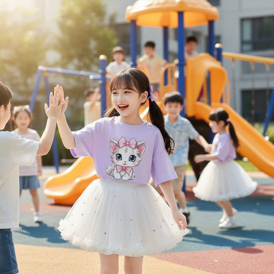 Sweat-shirts et jupes d'été pour filles, jolis motifs de dessins animés