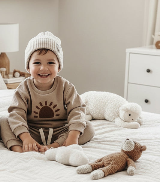 Ensemble 7 pièces pour nouveau-né : sweat-shirt, pantalon et bonnet porte-bonheur