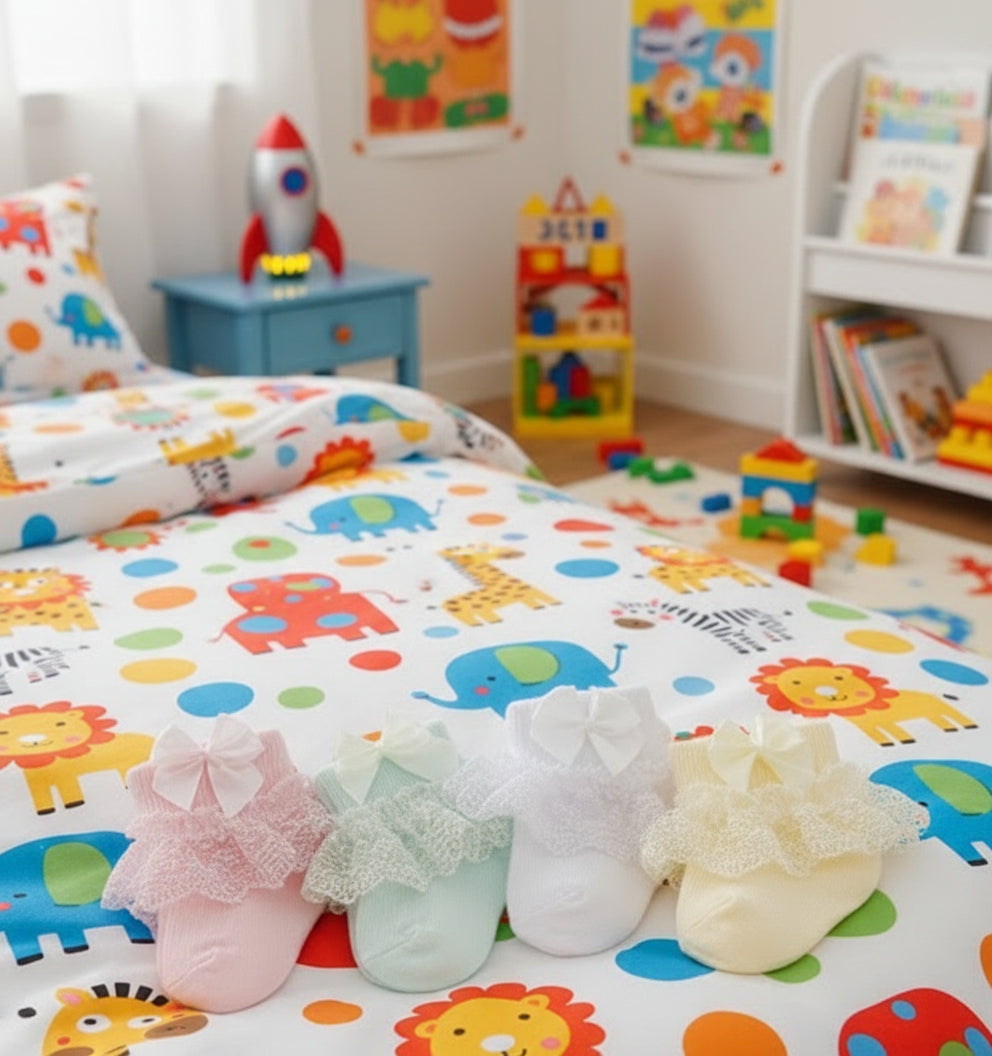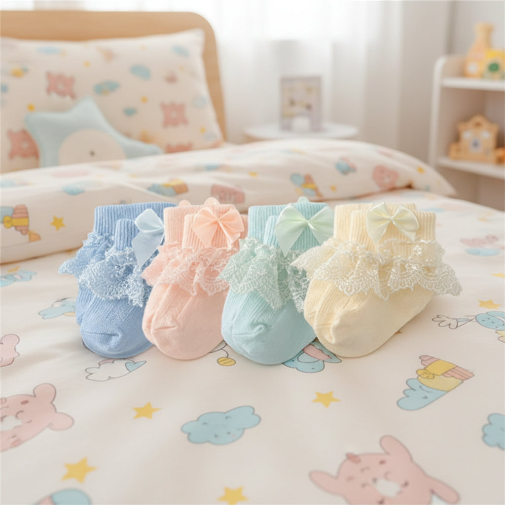 4 paires de chaussettes en coton et dentelle pour nouveau-né avec lien